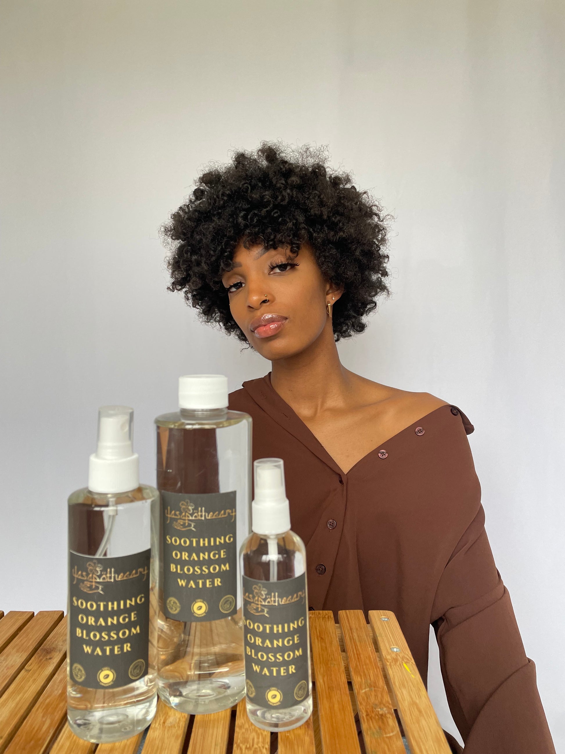 Orange blossom water is a fantastic beauty multi-tasker. It is rich in antioxidants and vitamins B & C, which all work to tone, firm, and moisturize the skin. It can also be used when styling natural hair and locs to moisturize and strengthen the hair shaft.